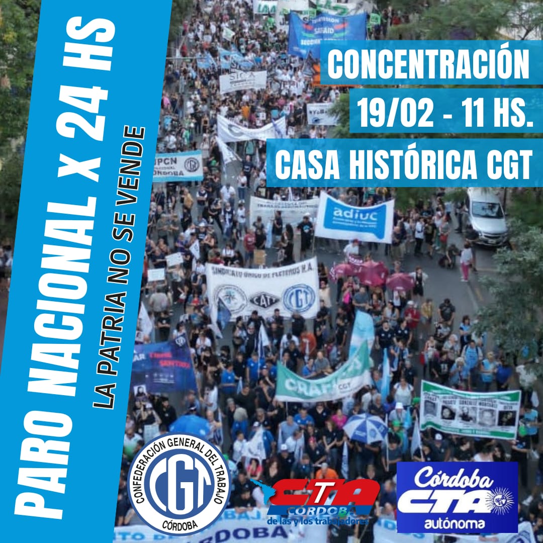 El Cispren adhiere al paro general contra la Reforma laboral y convoca a sus trabajadoras y trabajadores a concentrarse a las 10.30 en la sede de Obispo Trejo 365, para movilizarnos en contra de esta ley que intenta avanzar contra los derechos laborales.